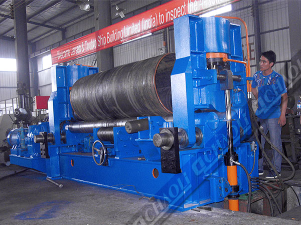 具備板端預(yù)彎功能,通過上輥水平移動,使上輥相對于下輥呈非對稱位置來實現(xiàn)板端預(yù)彎。